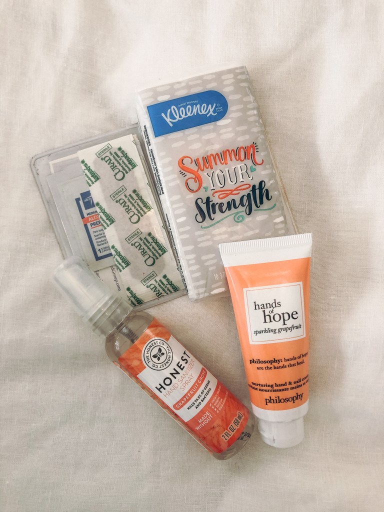 • Miscellaneous items-Chapstick, tissues, mini first aid kit, hand sanitizer, lotion, sunscreen etc.