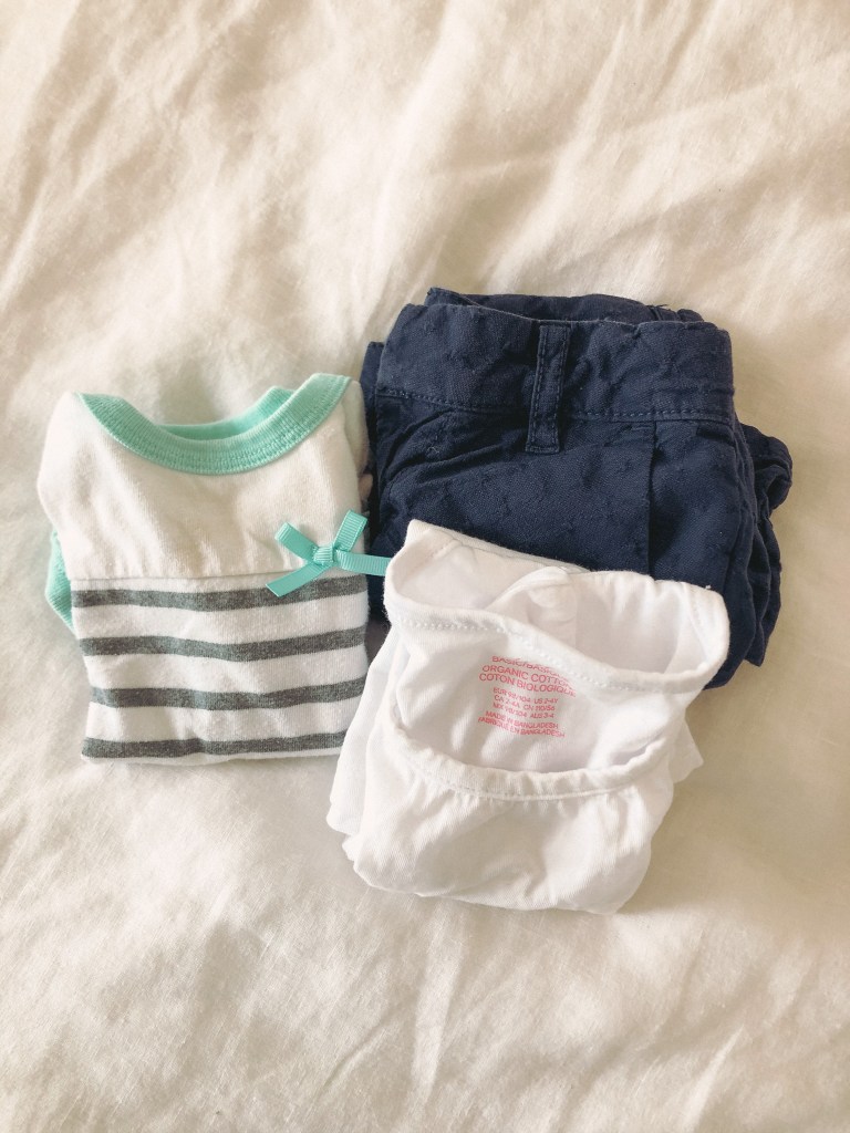 When I had my first baby, I had a HUGE diaper bag, and I brought everything with me and still felt like I always needed something else. By the time my second baby arrived, I got really really good at leaving the house with only the essentials (diapers and wipes), pending on the trip of course. When the girls were littler, I had way more items, luckily we don’t need pacis, burp cloths etc.