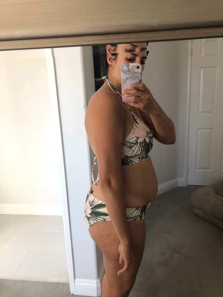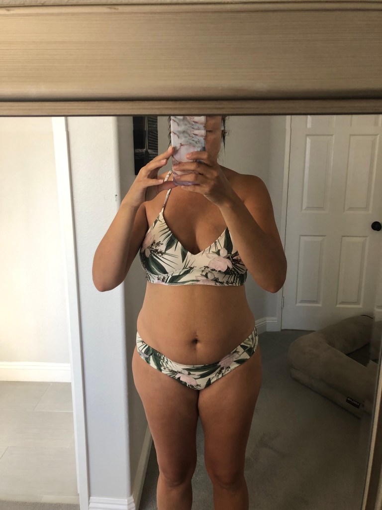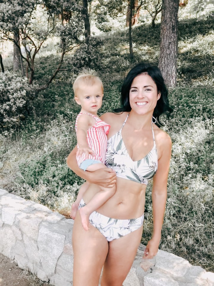 A woman’s body is nothing short of amazing, growing my children and being able to birth them will always one of my best moments. I will forever be in awe of my body and being able to grow and feed my babies for over four years straight now. I took these pictures right after my 6 week check up after having my first. I could only fit into maternity pants or leggings, I loved my body but felt out of sorts. Summer was in full swing and I couldn’t fit into most of my bathing suits (you could see my butt crack in these bottoms!) and the ones I could I wasn’t quite comfortable in. Truthfully I was harder on myself the second time around, I felt more pressure to get back to normal as so much of my postpartum journey the second time around was more of a roller coaster. I had stretch marks on my lower belly, my hips widen more than the first time around, my wedding rings hadn’t fit in almost a year and I had two babies vying for space on my lap non stop.