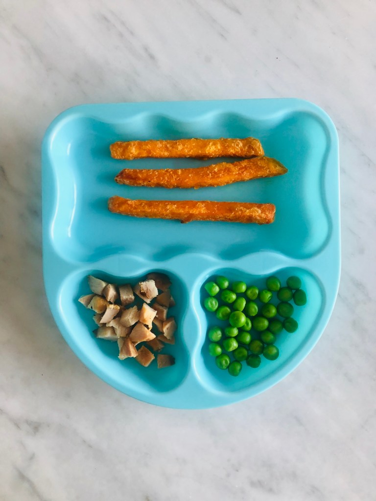 My absolute favorite part of baby led weaning is how “easy” meals are. I don’t make a meal for my husband and I and a completely different meal for the girls. Often I add extra stuff on their plates that I’m not having but its usually fruit, a starchy carbohydrate or a vegetable I know they like. On that note, even if I know they don’t like something I still occasionally offer it to them. Eventually then end up trying it again and liking it. This might take years, but you never know the one time they will take a bite of it and love it! I only offer a small piece to not overwhelm them and if they don’t like it to push it aside. As a baby they often throw what they don’t want, but as they get older I teach them to hand it to me, put it on the side of their plate and eventually just push it to the side of their plate.