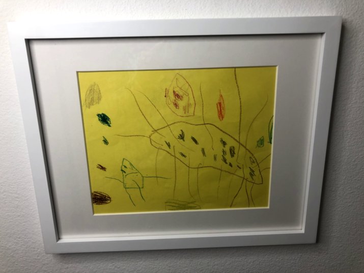 My oldest is always making things for us and is so excited with her creations. So why not showcase her artistic achievements even more! Especially since we do not have a magnetic fridge (which I am actually very very thankful for!), this is the perfect place to hang their stuff up.