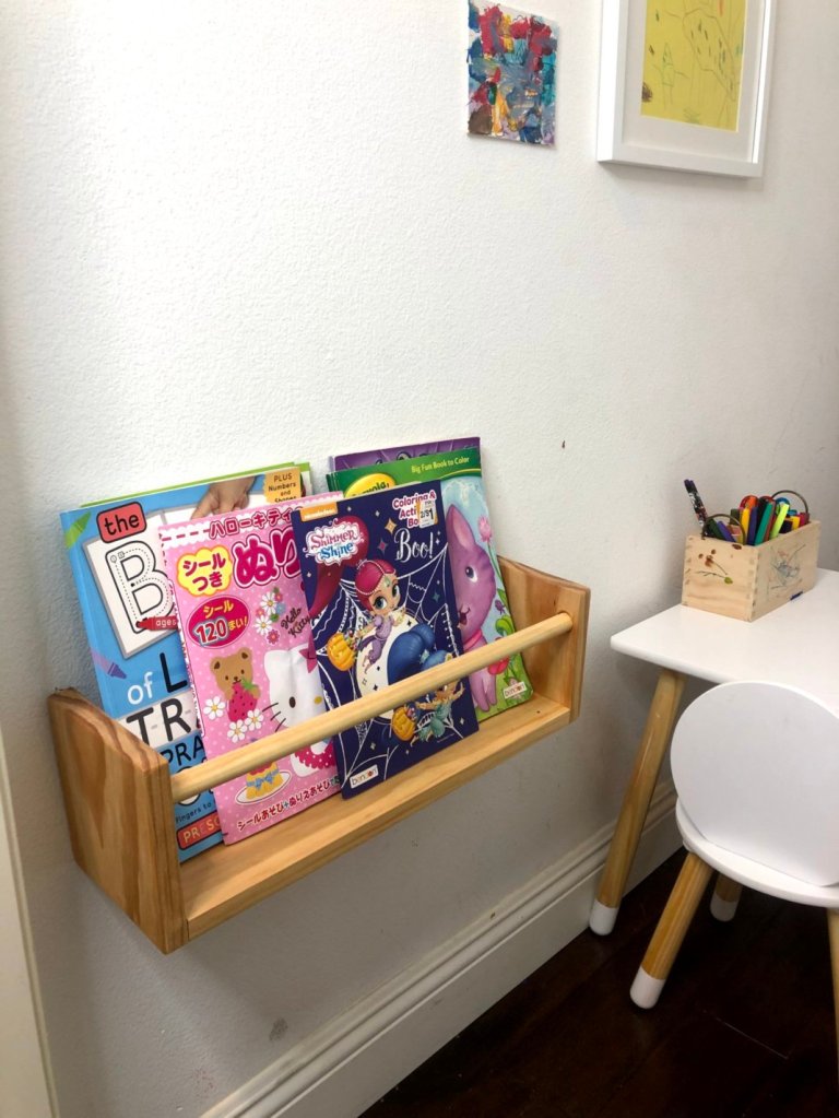 I already had the bookcase, I just purchased a few new cubes as the other ones were not pretty and the colors did not go with my new color scheme. Finding a kiddie table ended up being waaaaay harder than anticipated. When I started this “remodel” it was right before school was starting and with so many kids doing homeschooling right now, most kid size tables were out of stock. I knew I didn’t want to spend a couple of hundred dollars, because then I would be upset as soon as someone drew on the table.