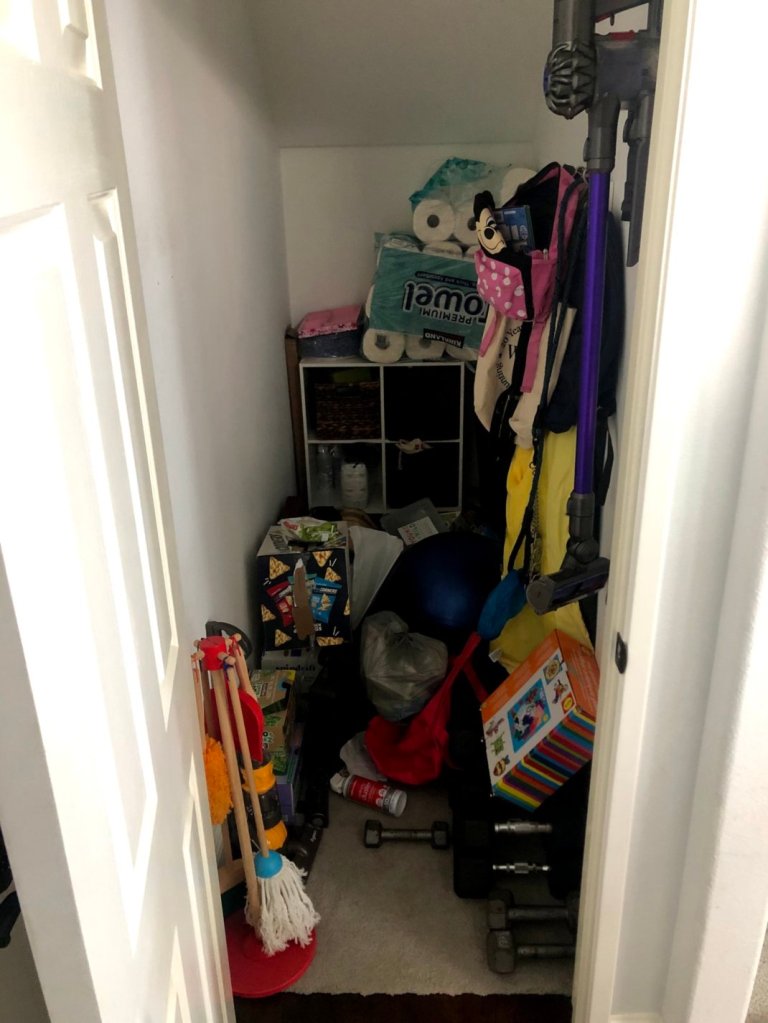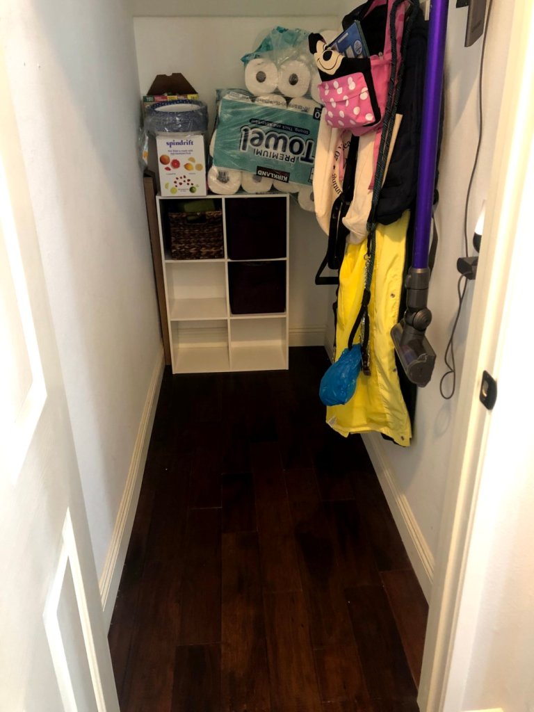 Honestly, it wasn’t a long drawn out process, one Sunday I went into the closet to get something and go super annoyed. I ended up cleaning everything out for the next couple of hours. At that moment I decided to turn it into an arts and crafts room for the girls. This space has been a bit of a thorn in my side since we moved in over 3 years ago, its a good size space. However, its long and narrow, which makes it hard for storage.