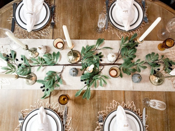 This year I decided to change up my Thanksgiving tablescape. I have been hosting Thanksgiving for almost 10 years or so, and each year I seem to change something up on my table. I was looking for a slightly different look this year for my Thanksgiving table and even though most stores had switched over to Christmas by the time I decided to do this, I was still able to pull off the look I was wanting to achieve!