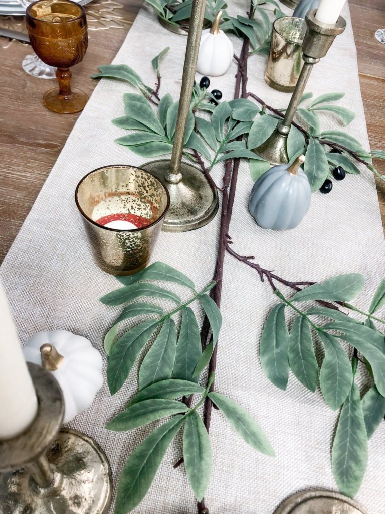 The faux olive branch was the finishing touch to add a bit of greenery on the table while filling in the white space. My 18 month old was trying to eat the olives of the branch in the store, so that must mean its a realistic faux branch!